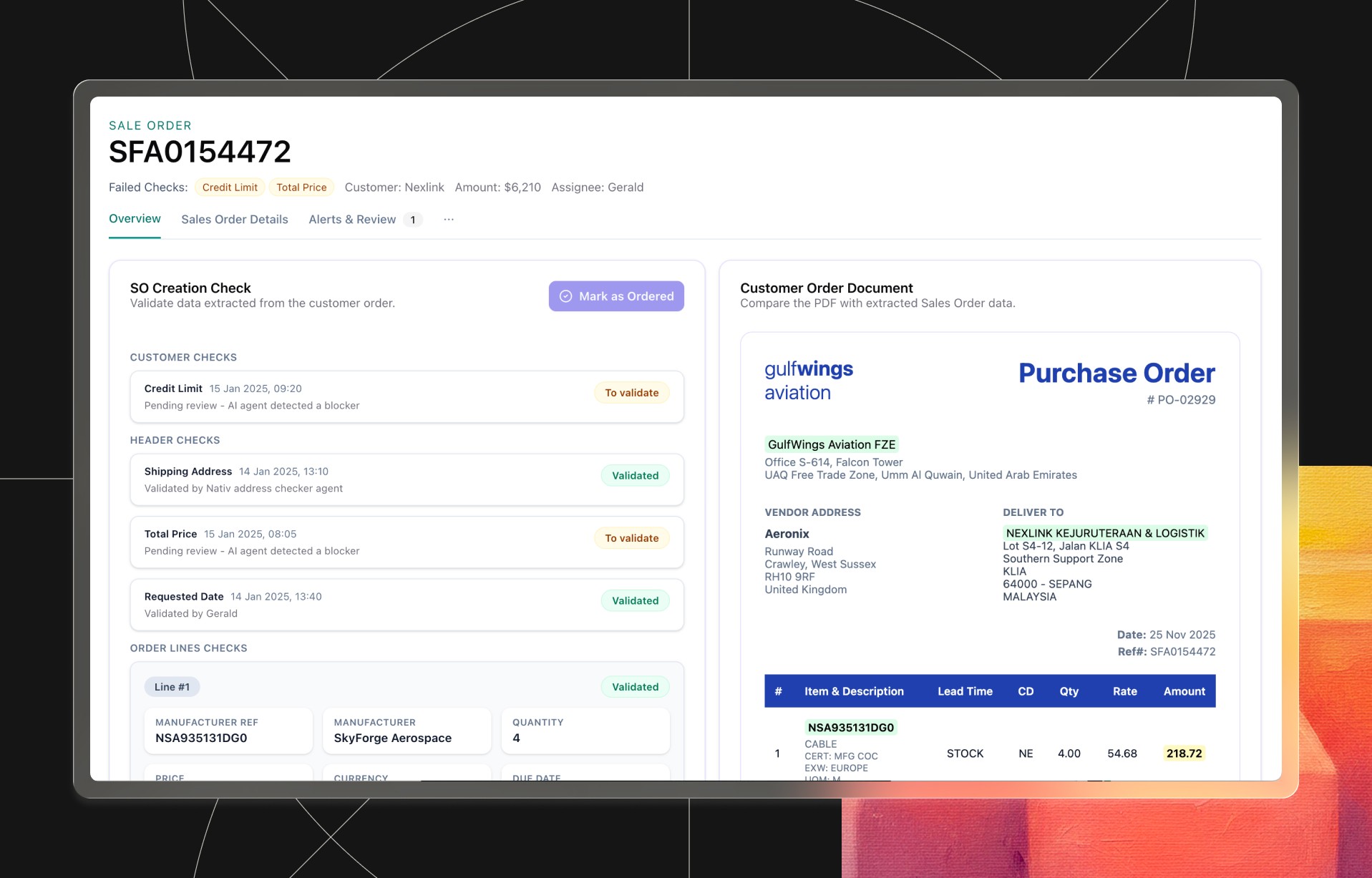 Orders validated before ERP execution